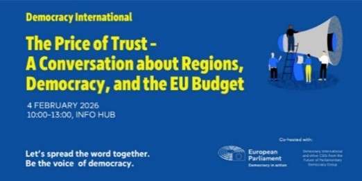 On 4 February 2026, the European Parliament, Democracy International, and the Future of Democracy Parliamentary Group will co-host an event at the Parliament’s InfoHub to explore how EU spending can strengthen transparency, accountability and democratic participation at regional and EU levels. Following an interview-style panel debate and audience Q&A session with members from the EU institutions, the event will move into an interactive hour on the theme ‘Three Big Ideas for Democracy’, where breakout discussions will turn the panel’s key proposals into concrete next steps for 2026. This final segment aims to empower participants to identify opportunities for collaboration and drive progress beyond the event. A coffee welcome session will kick off the event at 10:00. Register for this event here.