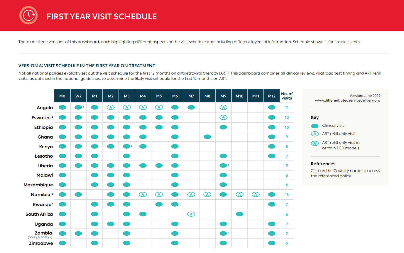 DSD policy dashboards on the visit schedule in the first year on HIV treatment