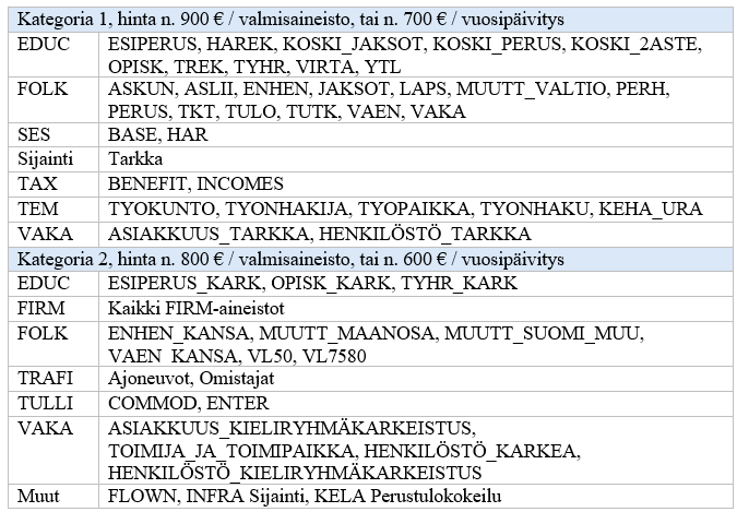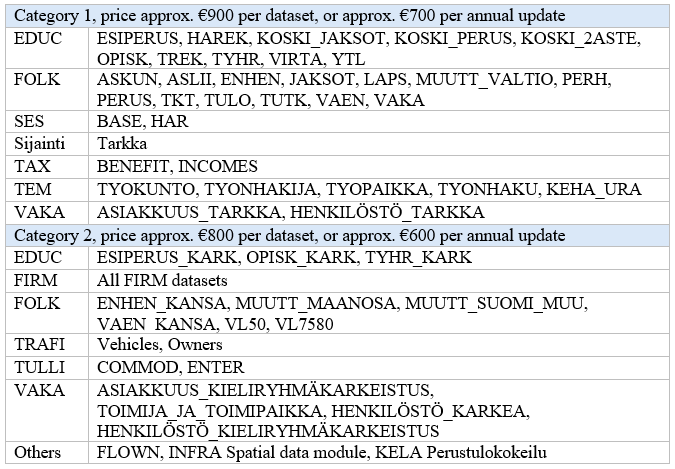 Tailored datasets and datasets from outside Statistics Finland as well as researchers’ own work files are still protected by the researchers just as other identifiers were previously. For this purpose, a shnro-HId_e link table is delivered to the folder D:\keys.
