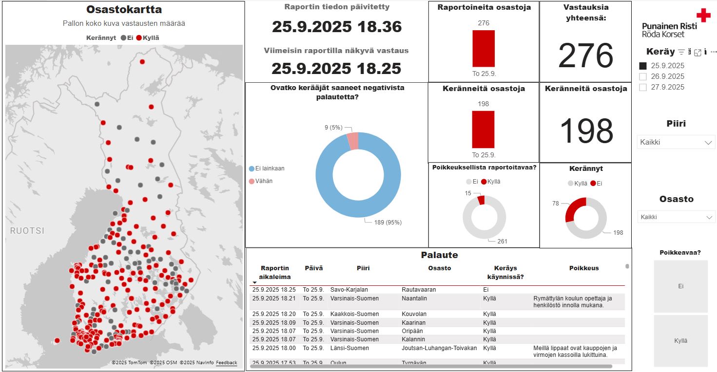 Nälkäpäivän lipaskeräys on nyt käynnissä. Toivottavasti kaikki on sujunut hyvin! Eilisen tilannekuvaraportin mukaan torstaina keräys oli käynnissä 198 osastossa ja 276 osastoa raportoi toiminnastaan.