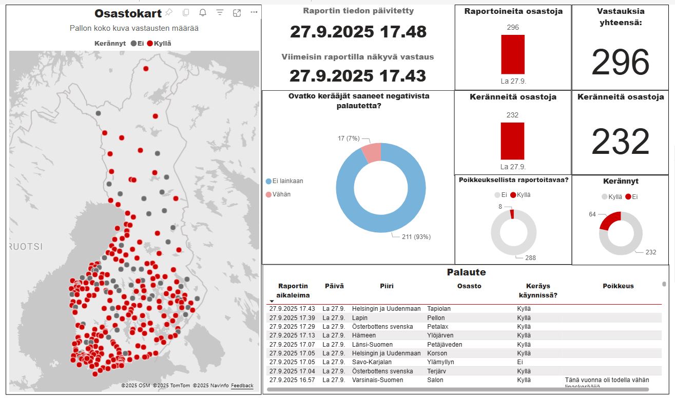 Tänään maanantaina pyydämme antamaan keräyksenne tulosarvion ja arvion keräykseen osallistuneiden vapaaehtoisten määrästä klo 18 mennessä.