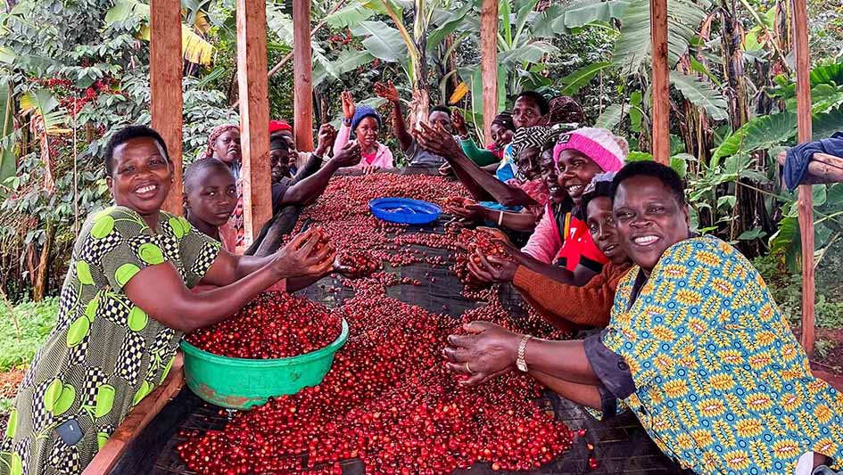 Jetzt kommt der Organico Blonde Fairness als neue Sorte dazu. Der Bio-Arabica kommt von unseren Handelspartnern aus Uganda (Partner MEACCE, s. Bild oben Frauen beim Sortieren der Kaffeekirschen) und Äthiopien und der Kaffee ist hell geröstet ("blond"). Der Kaffee enthält weniger Bitterstoffe und hat Fruchtaromen mit leichter Süße und angenehmer Säure. Er eignet sich für jegliche Filterzubereitung und sollte am besten schwarz getrunken werden.